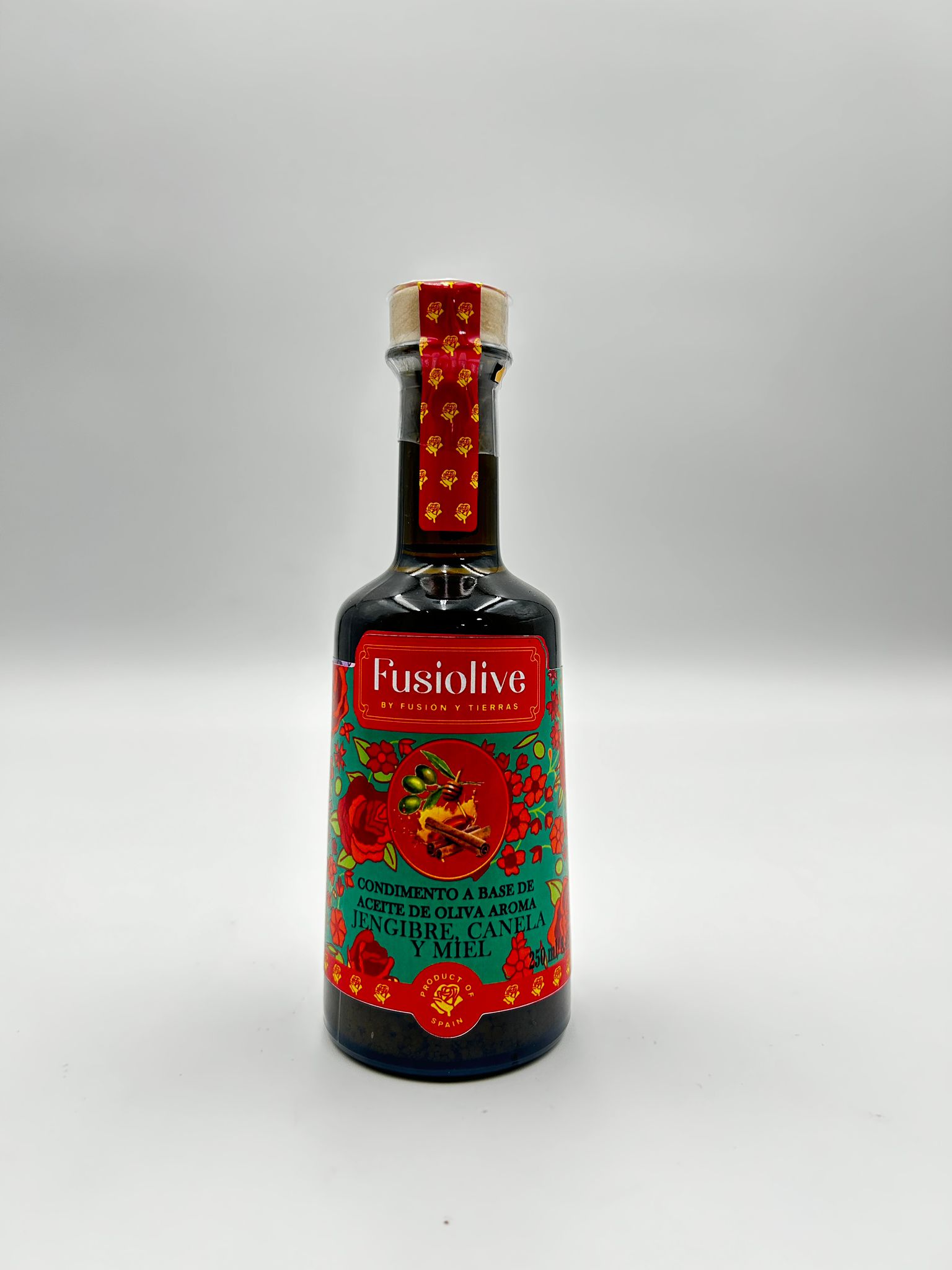 El Aceite de Oliva Aromatizado con Canela, Jengibre y Miel de Fusion Olive by Esencia Andalusí Gourmet es una propuesta sofisticada que combina la intensidad del Aceite de Oliva Virgen Extra con la calidez especiada de la canela, el carácter fresco del jengibre y la suavidad natural de la miel.
