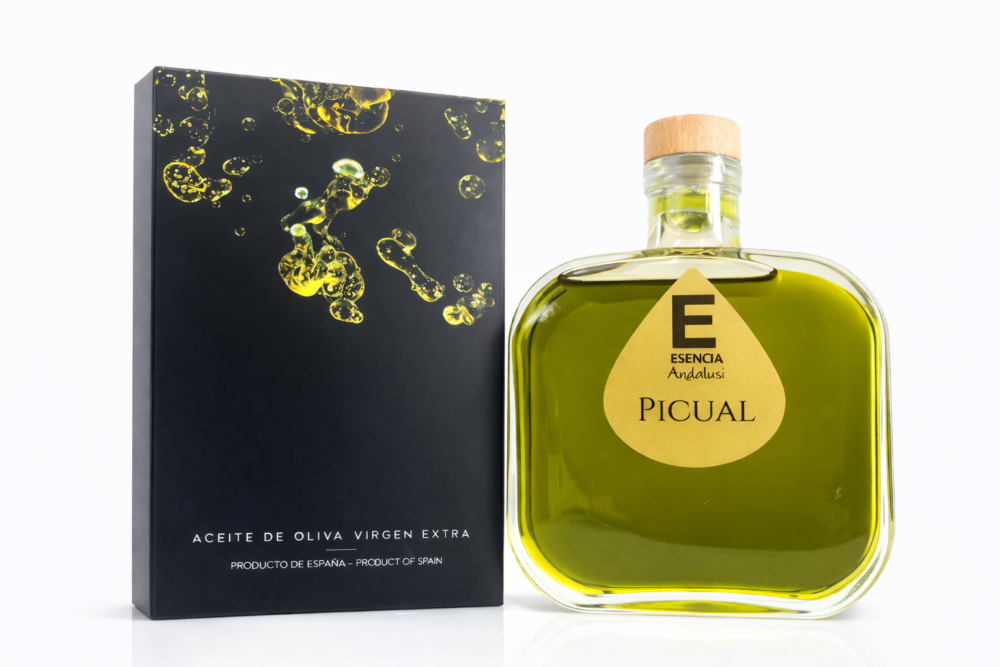 Este virgen extra procede de nuestros olivos de variedad Picual. Seleccionamos nuestras aceitunas cuando están en envero (cuando todavía no están negras) y seguidamente las molemos en frío, en el mismo día de recogida. De esta manera obtenemos este exclusivo Virgen Extra Premium con un sabor y aroma tan intenso a fruto fresco. Nuestro Picual se caracteriza por ser un aceite que tiene un carácter con mucho cuerpo. En vista, nuestro Picual se muestra en vista verde brillante. Al olerlo, se pueden apreciar de forma rica sus notas elegantes de romero, tomillo y menta. En el paladar es liso y fino, con tonos ricos de hierba recién cortada y hojas verdes.