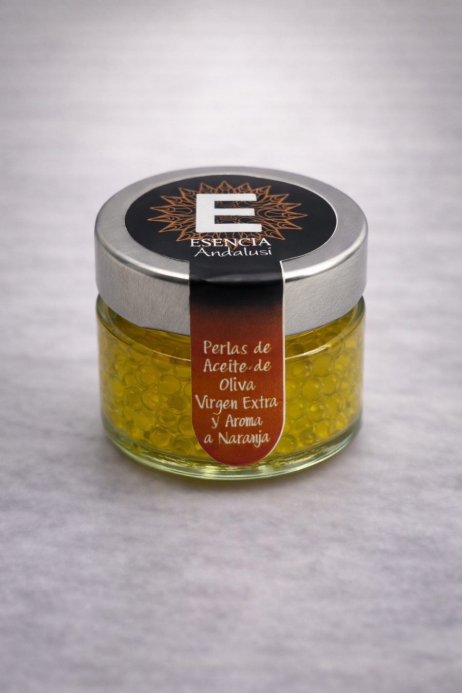 Nuestras Perlas de Aceite de Oliva con Naranja 50 gr están elaboradas al 100% con Aceite de Oliva Virgen Extra y acompañadas de naranja. Se trata de unas brillantes perlas de aceite doradas, que estallan en la boca y ofrecen repentinamente su intenso sabor. Están elaboradas a través de la técnica culinaria de la encapsulación, de esta forma, el aceite queda dentro de una textura de gelatina.